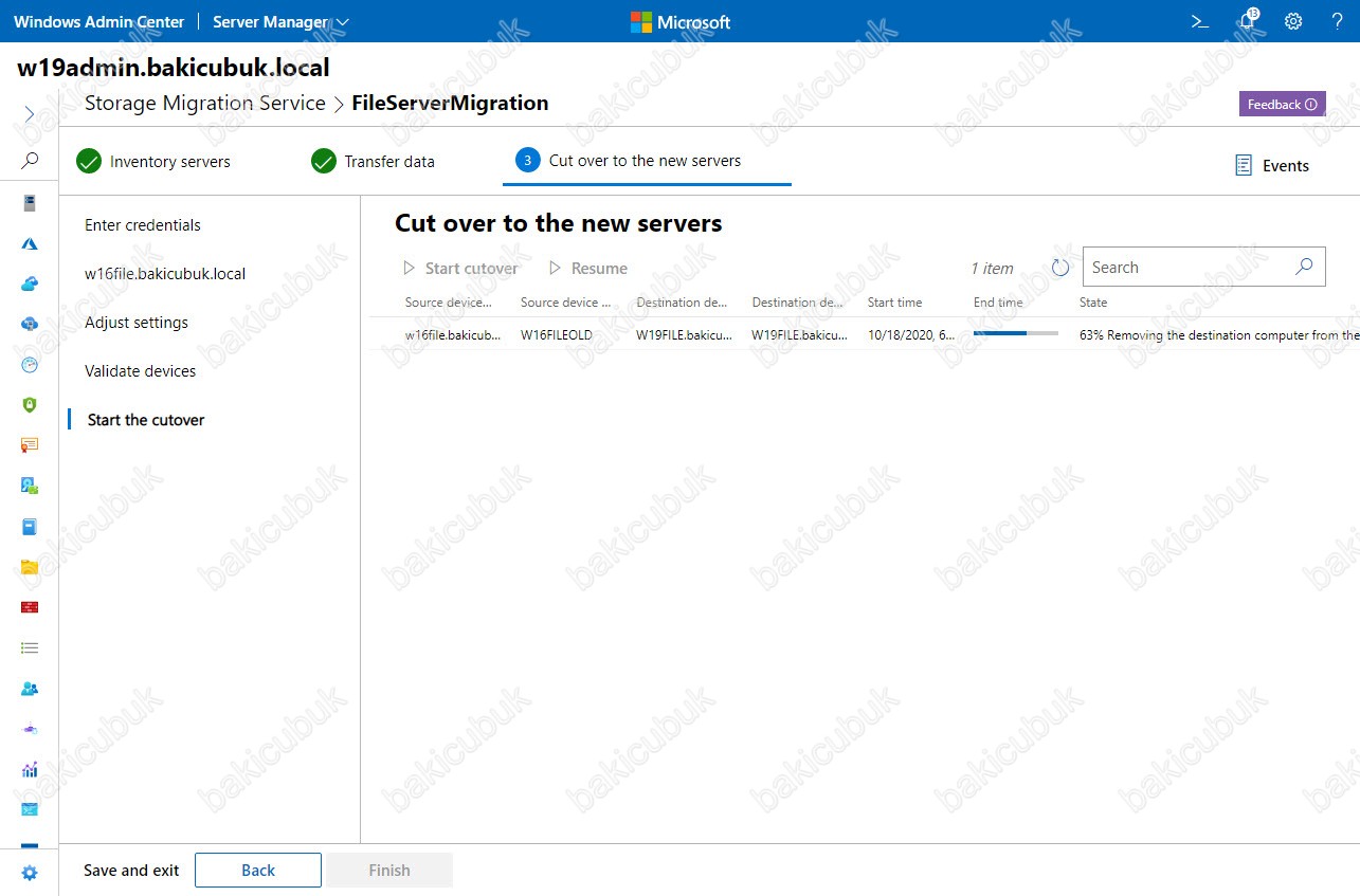 Windows Admin Center Storage Migration Service ile W16FILE isimli paylaşım klasörlerinin üzerinde bulunan sunucumuz üzerinden W19FILE isimli sunucumuz üzerine paylaşım klasörlerini taşıdığık. Sonrasında da eklenen ya da değişen klasör ve dosyalarımızı taşıma işlemini gerçekleştirdik.
