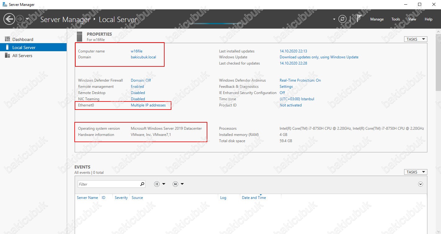 Birinci sunucumuz Windows Server 2016 Datacenter işletim sistemine sahip W16DC isminde ve 192.168.1.200/24 olarak IP Adresi yapılandırılmıştır. Üzerinde Active Directory Domain Services yapılandırılarak bakicubuk.local isimli bir Active Directory Domain ortamı kurularak ortamımız da Primary Domain Controller olarak görev yapmaktadır. Eğer Windows Server 2016 Active Directory Yapısını Windows Server 2019 Active Directory Yapısına Yükseltme isterseniz daha önce paylaştığımız Windows Server 2016 Active Directory Yapısını Windows Server 2019 Active Directory Yapısına Yükseltme faydalanabilirsiniz.