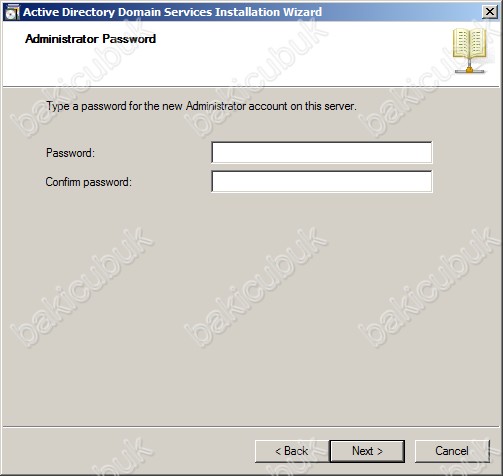Administrator Password ekranın da W08R2DC isimli Windows Server 2008 R2 işletim sistemine sahip sunucumuz artik Domain Controller olarak görev yapmayacağı için Local Administrator kullanıcısı için bir Password ( Parola ) yapılandırmamız gerekiyor.