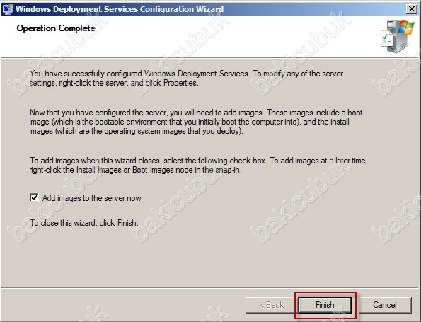 Sihirbaz tamamlandıktan sonra, son olarak karşınıza bir seçenek çıkacaktır. Add images to the server now seçeneğini seçerseniz, İşletim sistemleri için boot ve install images seçmek için sihirbazı devam ettirirsiniz. Ben bu seçeneğin işaretini kaldırarak devam ediyorum.