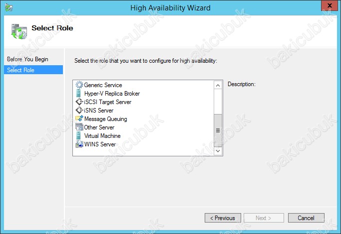 Select Role ekraninda yapılandırabileceğimiz High Availability rollerini görüyoruz.