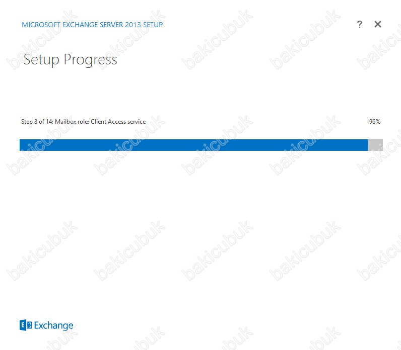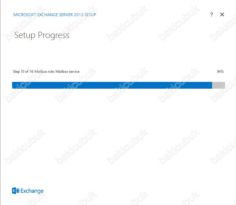 Setup Progress ekraninda Exchange Server 2013 kurulum adimlari başlıyor.