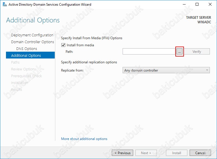 W16ADC isimli sunucumuz üzerinde Install From Media (IFM) seçeneği ile Additional Domain Controller yapılandırmasını başlatıyoruz.