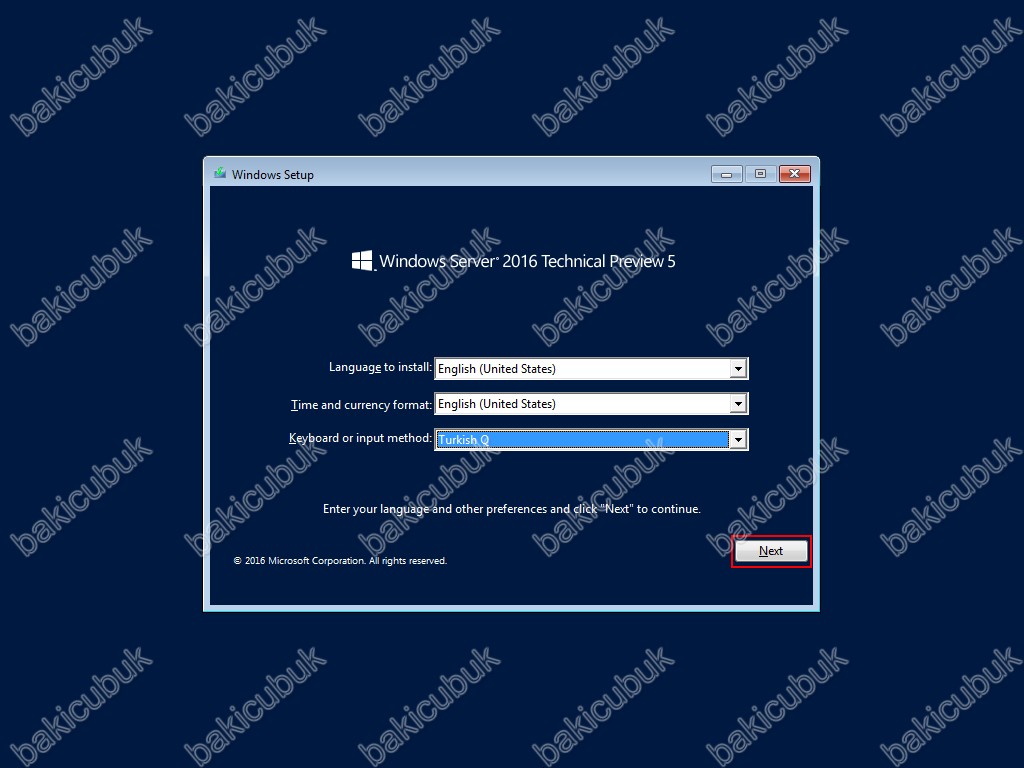 Install now diyerek Windows Server 2016 Technical Preview 5 kurulumuna devam ediyoruz.
