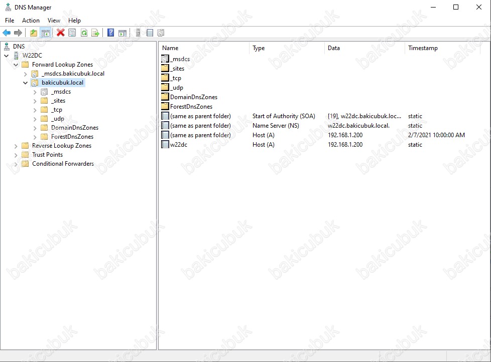 Domain Name Server ( DNS ) Server rolünün DNS Manager konsolu aşağıdaki gibi geldiğini görüyoruz.