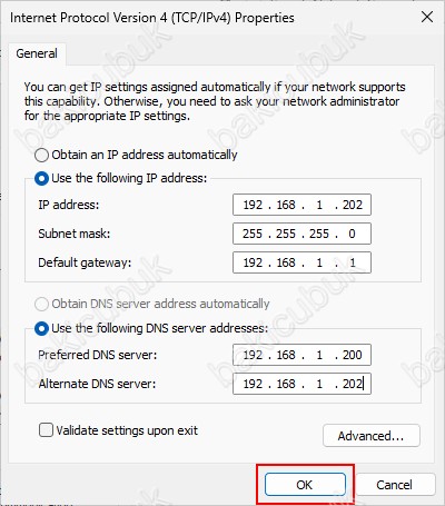 Internet Protocol Version 4 (TCP/IPv4) ekranında gerekli yapılandırmayı tamamladıktan sonra OK diyerek yapılandırmayı tamamlıyoruz.